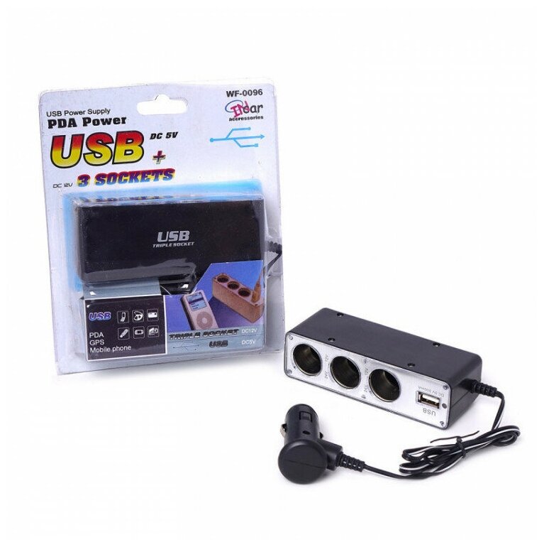 Отзывы на Разветвитель автомобильный для прикуривателя, 3 гнезда + USB, предохранитель, 5А, USB 500mA,