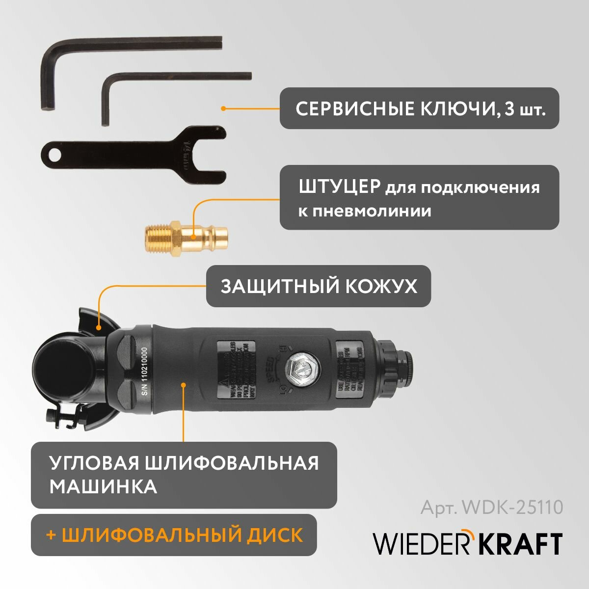 WDK-25110 Wiederkraft Пневматическая угловая шлифмашинка (УШМ) для дисков 2″ (50 мм) информация: