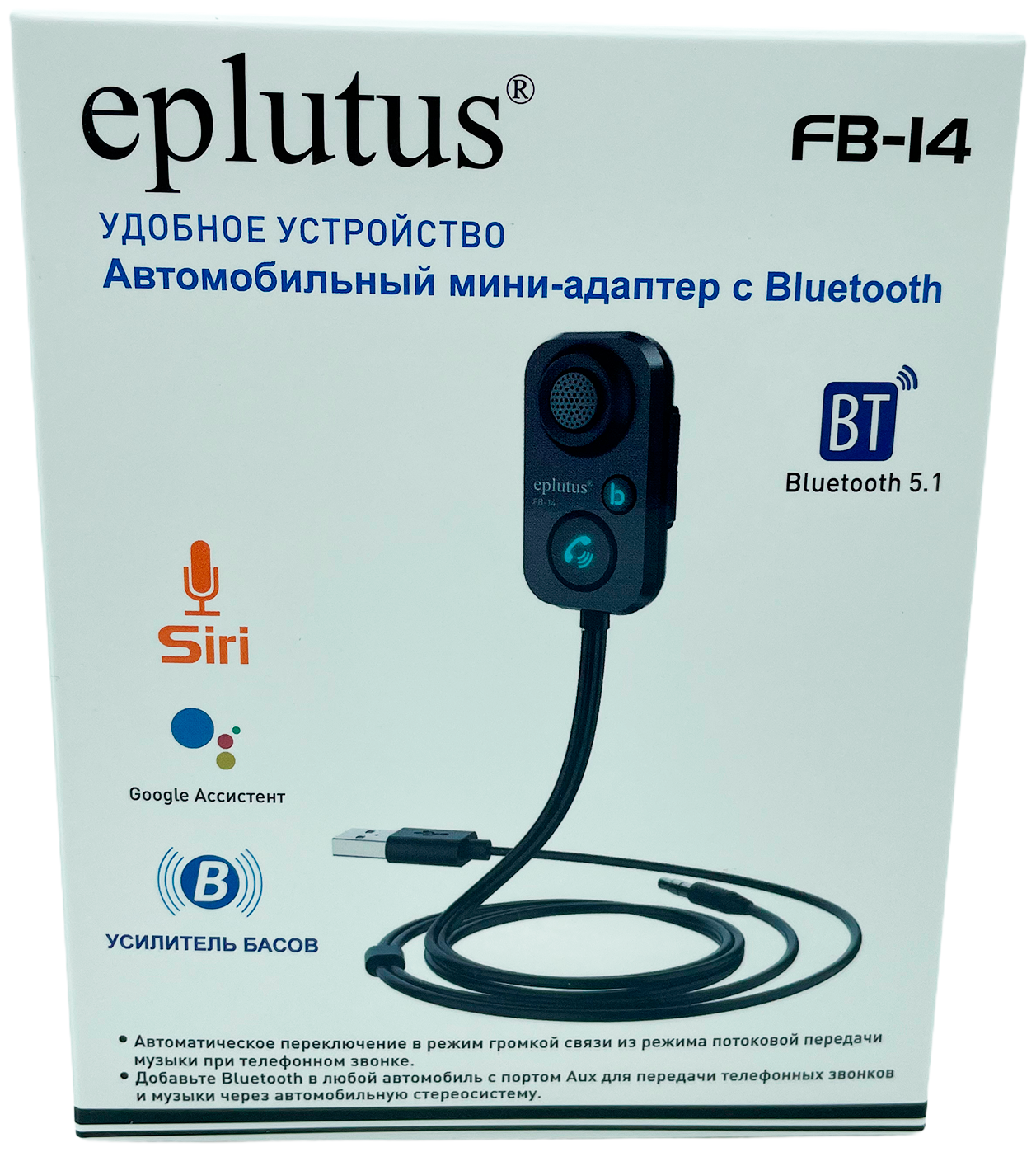 Автомобильный мини-адаптер с Bluetooth и голосовым помощником Eplutus FB-14