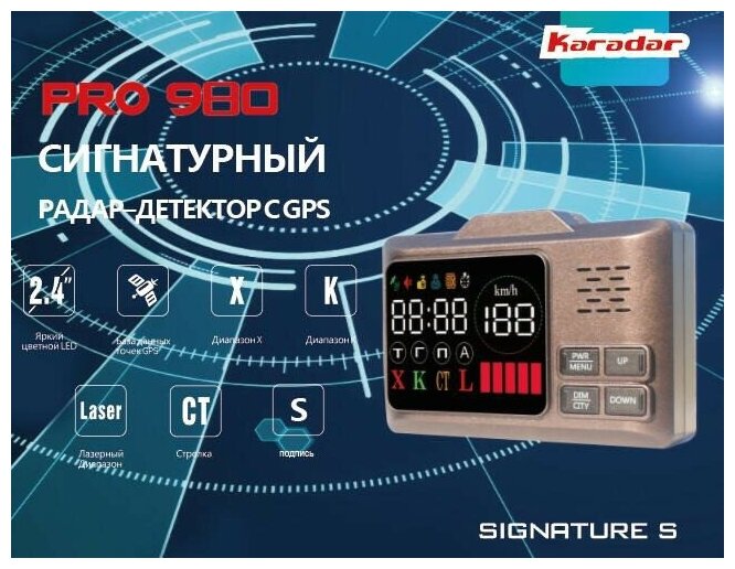 Радар-детектор Karadar PRO 980 сигнатурный информация: