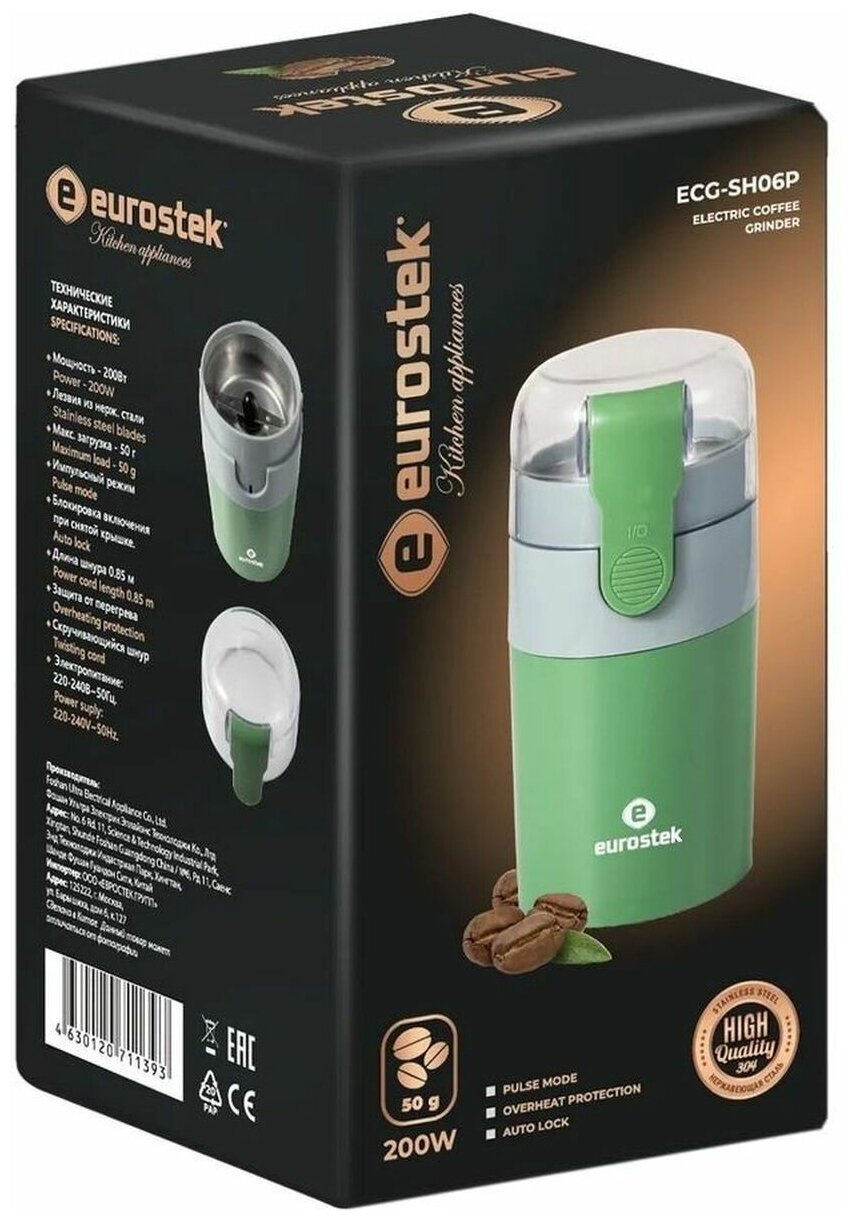 Кофемолка электрическая Eurostek ECG-SH06P Зеленый информация: