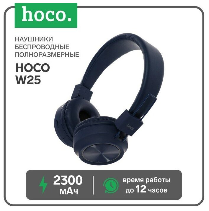 Наушники Hoco W25, беспроводные, накладные, BT5.0, 300 мАч, микрофон, синие