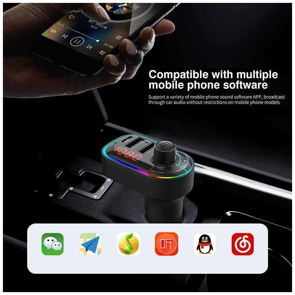 10 цен на FM-Модулятор TDS F12 с подсветкой RGB (Bluetooth)