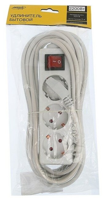 Отзывы на Удлинитель Luazon Lighting, 3 розетки, 5 м, 10А, 2200 Вт, ПВС 3х1.5 мм2, с з/к, с выкл., Б Luazon Li
