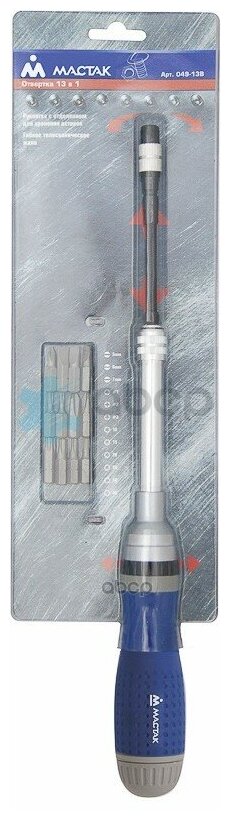 Отвертка Универсальная 13 В 1, С Трещёткой И Гибким Стержнем Мастак арт. 04913B информация: