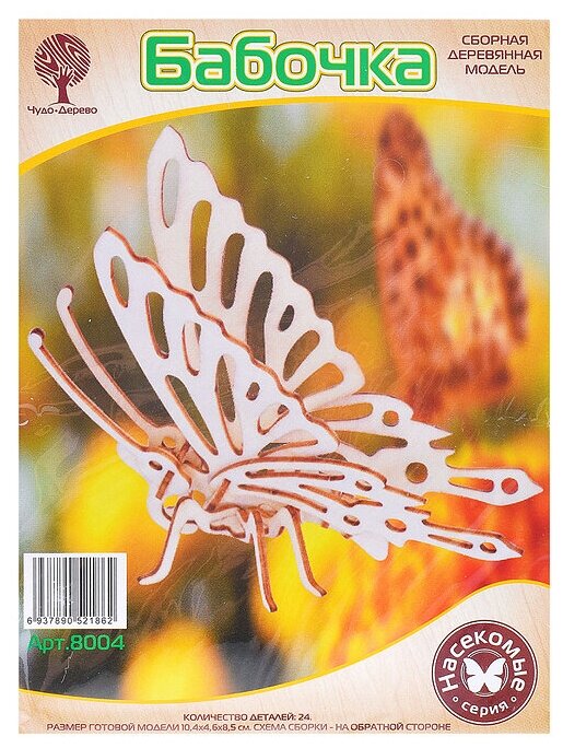 10 цен на Сборная деревянная модель, Чудо-Дерево Насекомые Бабочка, 24 детали, 1 шт