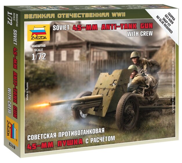 ZVEZDA 6112 Модель для сборки без клея Советская противотанковая 45-мм пушка с расчётом 6112 Советская 45 мм пушка 1/72
