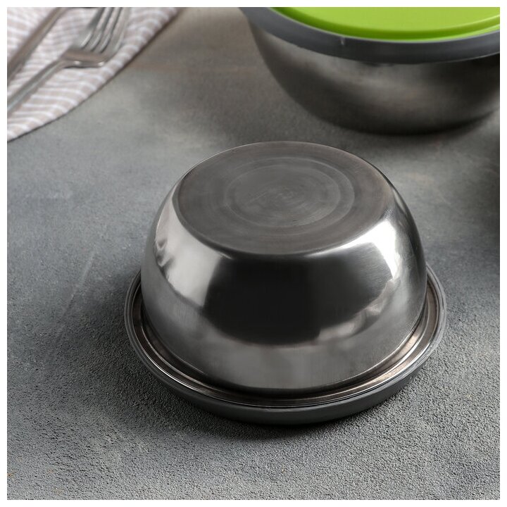 Набор салатников из нержавеющей стали с крышками «Яркая сталь», 3 шт: d=12 см, d=14 см, d=16 см, 800 мл, 600 мл, 400 мл, цвет микс 1 108 ₽