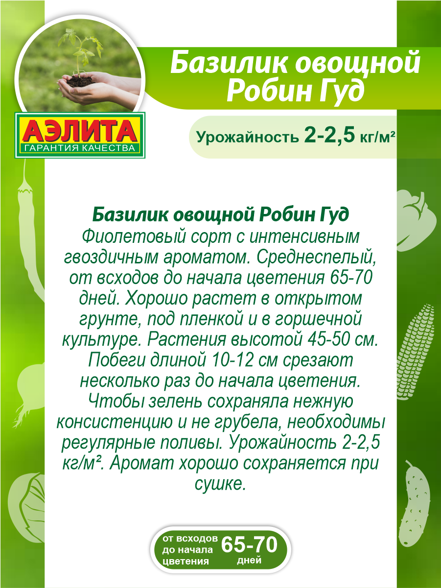Семена Агрофирма аэлита Лидер Базилик овощной Робин Гуд 0.3 г