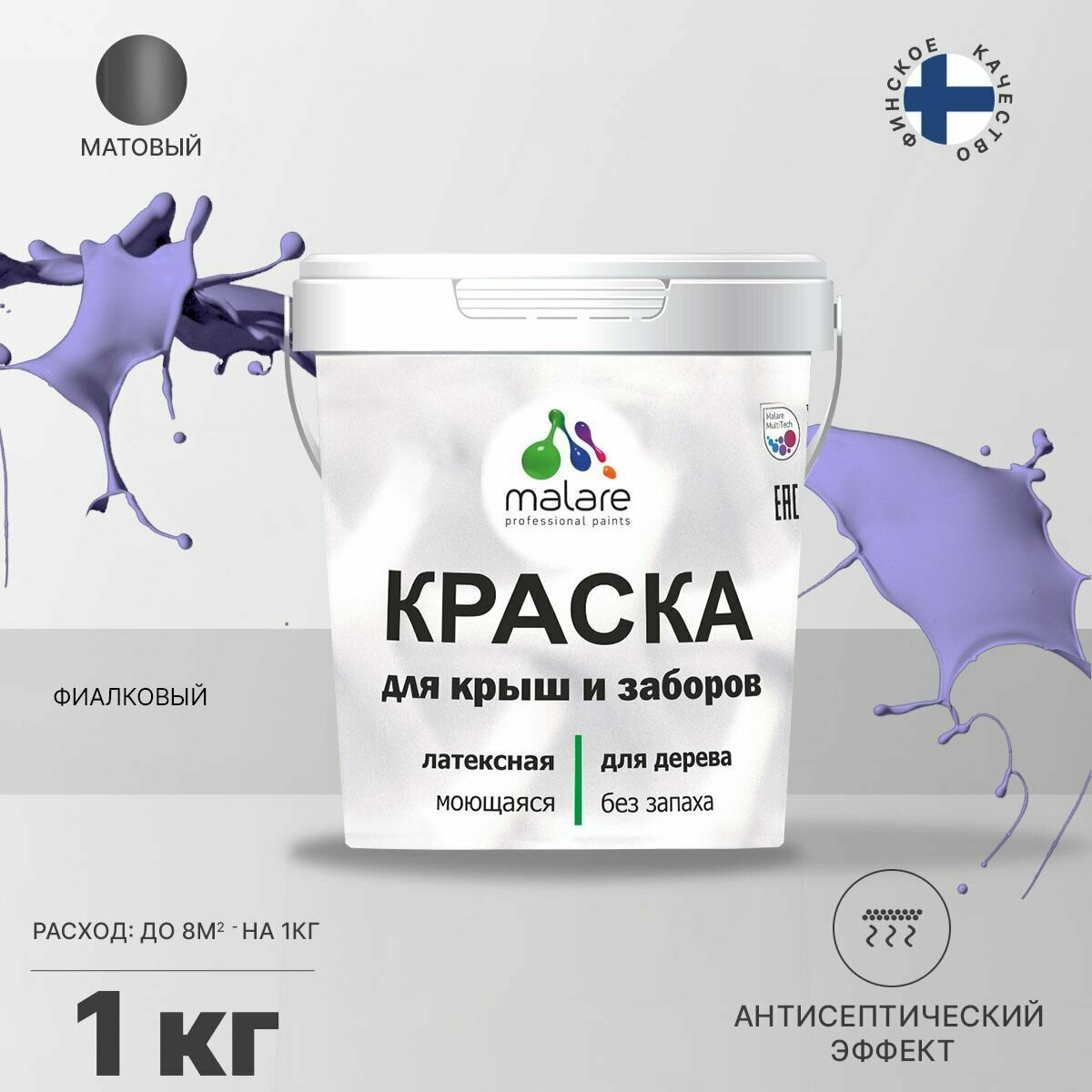 Краска Malare для деревянного забора, шифера, с антисептическим эффектом, быстросохнущая, без запаха, матовая, фиалковый, 1 кг. информация: