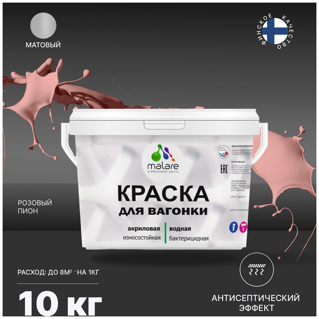 10 цен на Краска Malare для вагонки и любых деревянных поверхностей, для фасадов и интерьера, быстросохнущая без запаха матовый, розовый пион, 10 кг