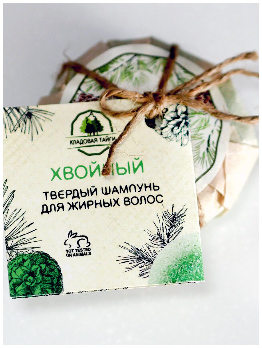 Натуральный твердый шампунь ручной работы для жирных волос "Хвойный", 80 гр. без сульфатов и парабенов. Кладовая тайги. информация:
