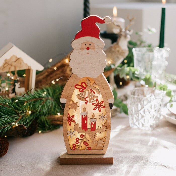 10 цен на Светодиодная фигура «Дед Мороз» 11 × 28 × 5 см, дерево, батарейки АААх2 (не в комплекте), свечение тёплое белое
