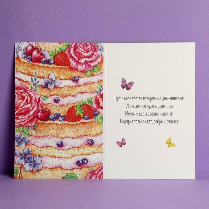 Дарите Счастье Открытка "В День Рождения" тиснение, тортик, 12 х 18 см информация: