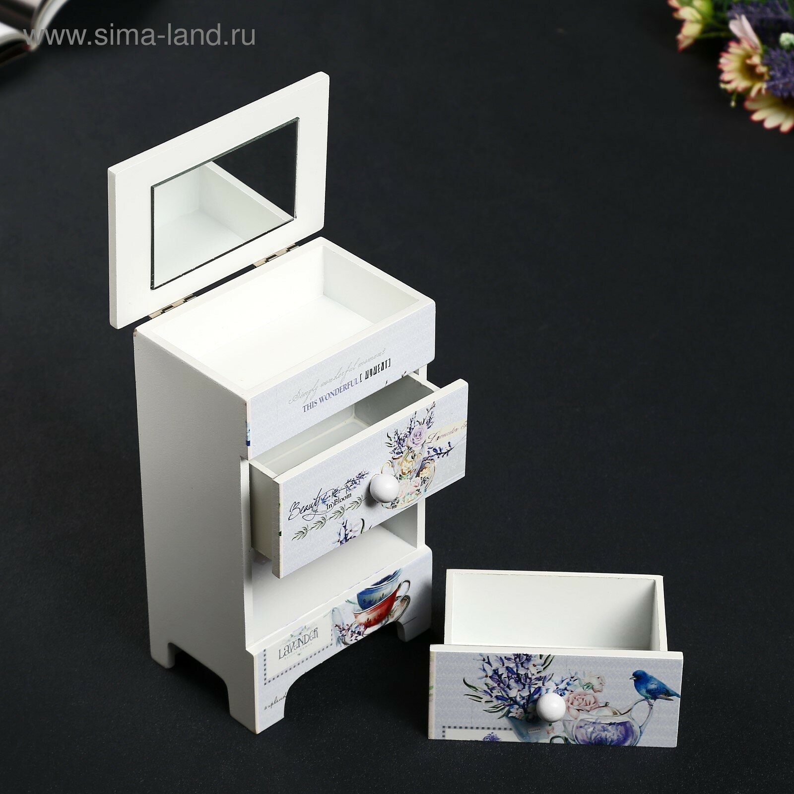 10 цен на Шкатулка дерево 2 ящика "Синяя птица и лаванда" 18,5х11,7х7,5 см