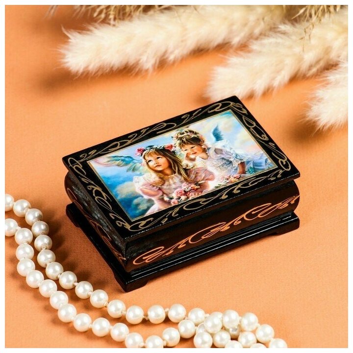 Шкатулка ТероПром 2663987 «Ангелочки с цветами», 6×9 см, лаковая миниатюра информация: