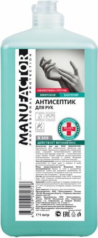 Manufactor Антисептик для рук №309 (ПВХ), 1000 мл, тип крышки: дозатор