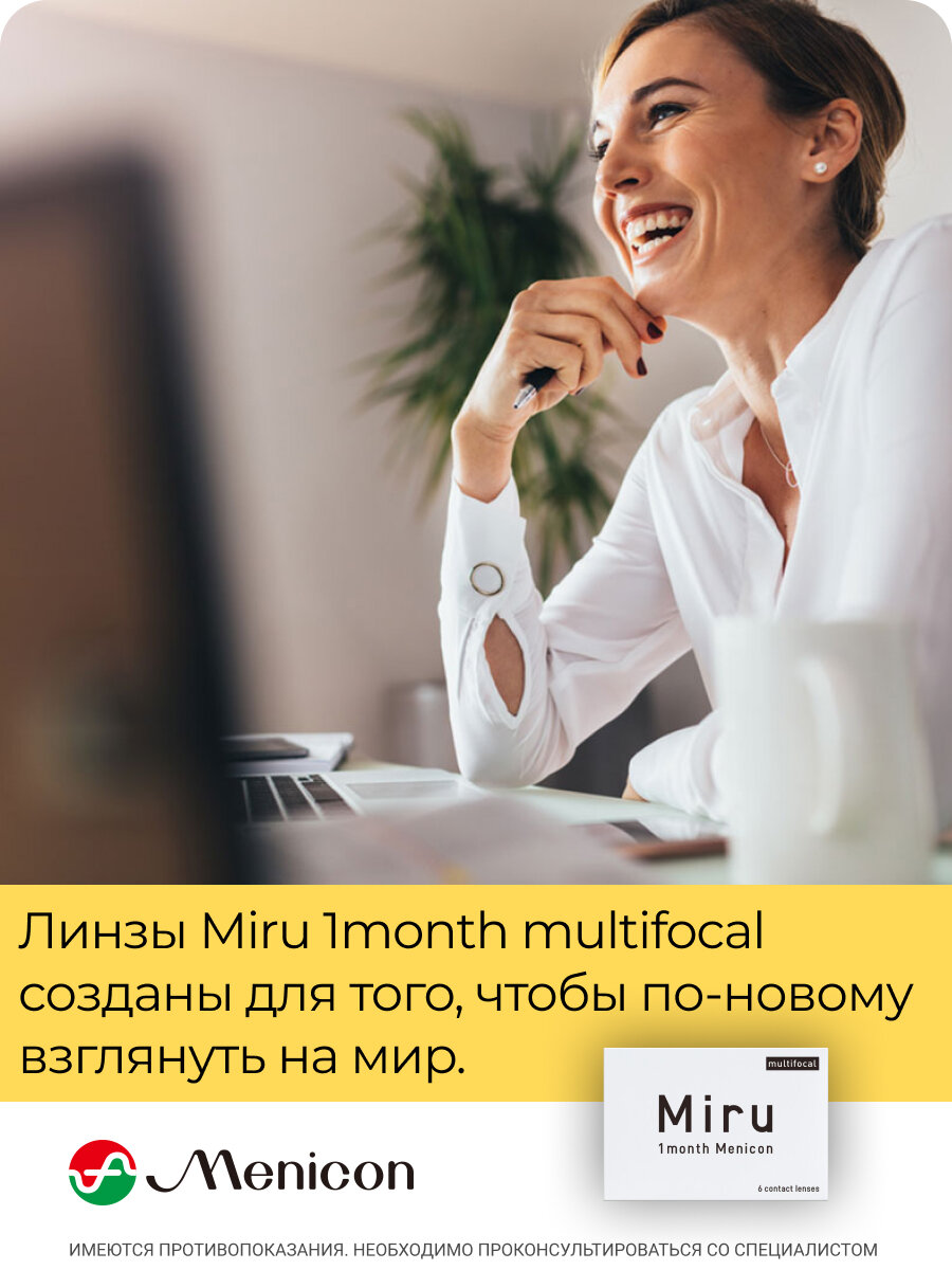 Отзывы на Мультифокальные линзы Menicon Miru Multifocal 6 линз R 8.6 SPH -10.50 Аддидация LOW (+1.00)