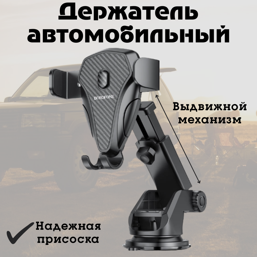 Держатель автомобильный BOROFONE BH38, на присоске, для смартфона, цвет: чёрный