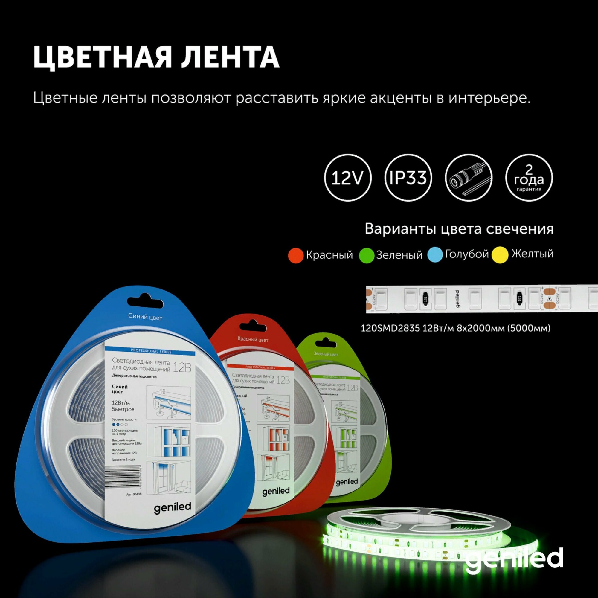 10 цен на Светодиодная лента 12 В Geniled 12 Вт/м 2835/120-IP33 8 мм красный 5 м