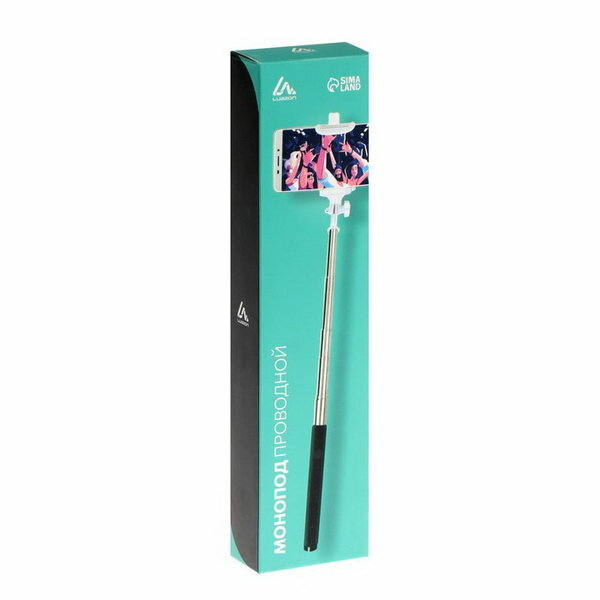 10 цен на Монопод для селфи LuazON, на проводе, 28 - 93 см, провод 15 см, черный