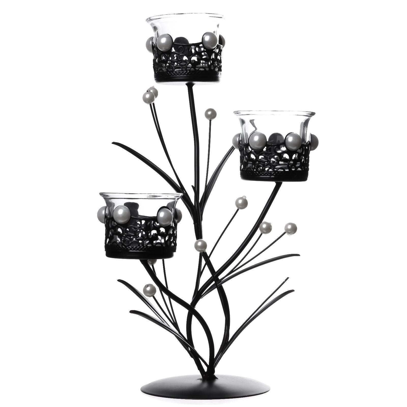Отзывы на Подсвечник металл, стекло на 3 свечи "Ажурный с жемчугом" чёрный 29х15х11,5 см