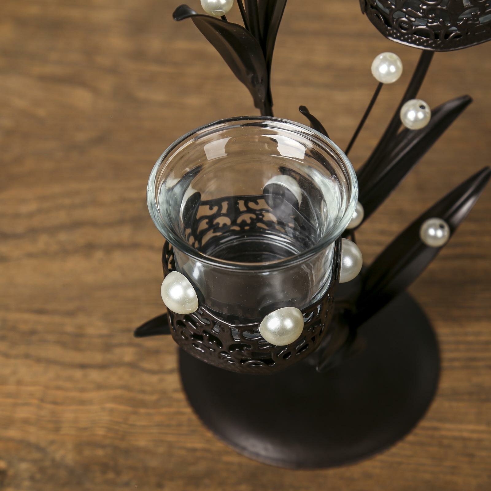 Подсвечник металл, стекло на 3 свечи "Ажурный с жемчугом" чёрный 29х15х11,5 см информация: