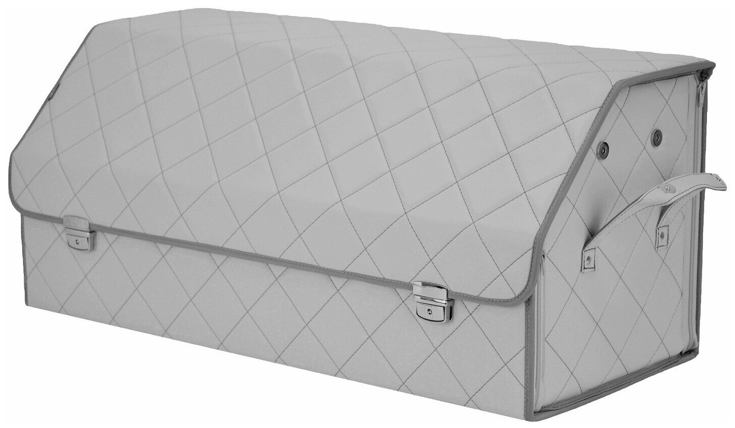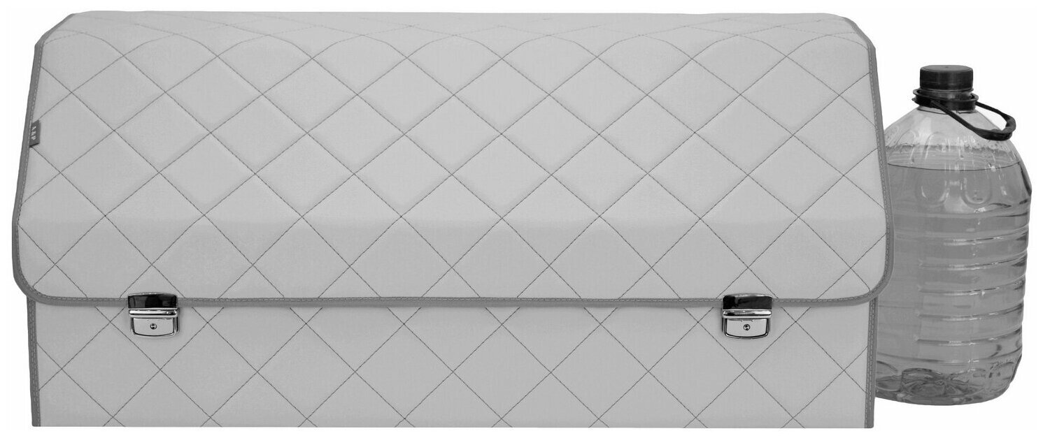 Органайзер в багажник "Союз Премиум" (размер XXL). Искожа. Цвет: серый с черной прострочкой ромб. 11 832 ₽