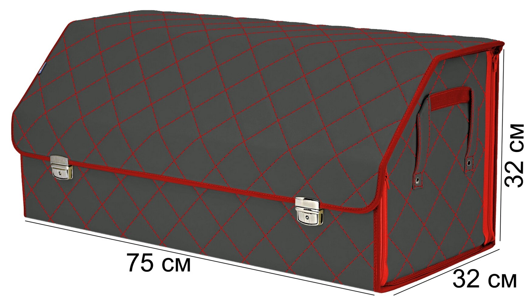 Органайзер в багажник "Союз Премиум" (размер XXL). Искожа. Цвет: серый с красной прострочкой ромб. информация: