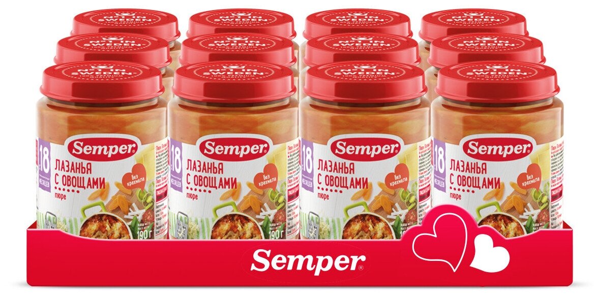 Пюре SEMPER (Семпер) Лазанья с овощами с 18 мес 190 г (12 штук в упаковке) информация: