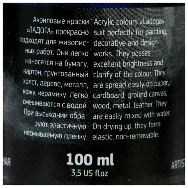 Краска акриловая художественная «Ладога», 100 мл, сажа газовая информация: