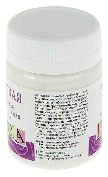 Краска акриловая Decola, 50 мл, белая, Matt, матовая информация: