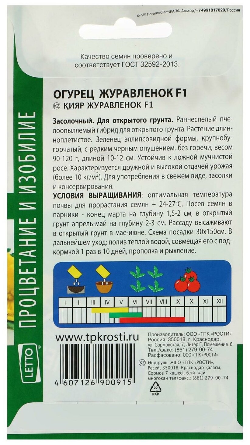 Семена агроуспех Огурец Журавленок F1, 0,3г / 1 пакет информация: