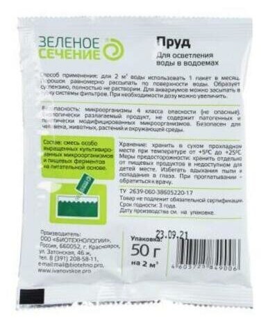 Зеленое сечение Средство для осветления воды в водоемах Пруд, Зелёное сечение, 50 г