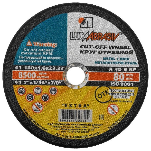 LUGAABRASIV Круг отрезной по металлу "Луга" A 30 S BF 80 (14А БУ), 230 х 2.5 х 22 мм