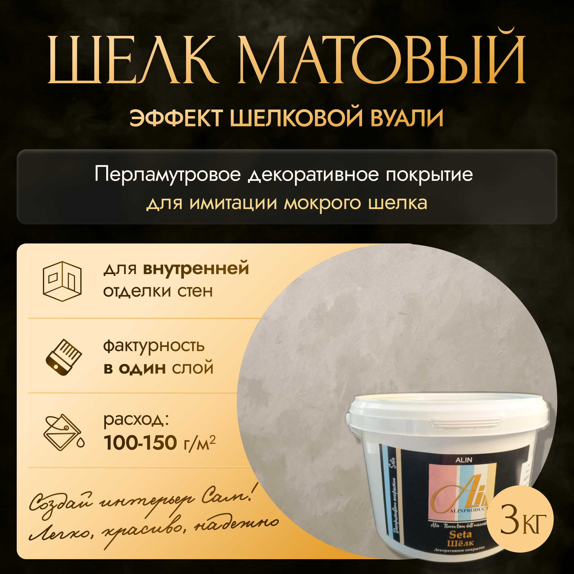 Краска для стен Шёлк Seta матовый ALINPRODUCT декоративное покрытие для имитации мокрого шелка 3 кг информация: