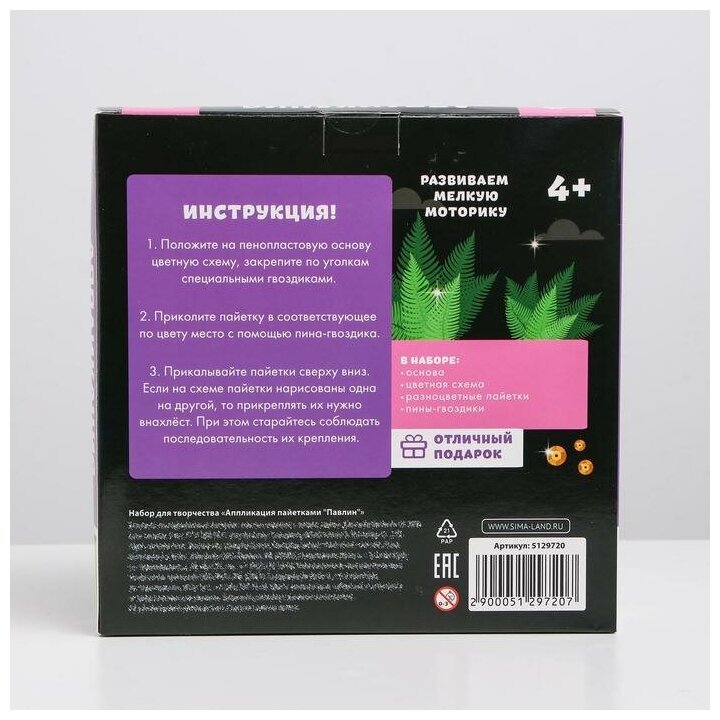 Школа талантов Набор для творчества. Аппликация пайетками «Павлин» информация: