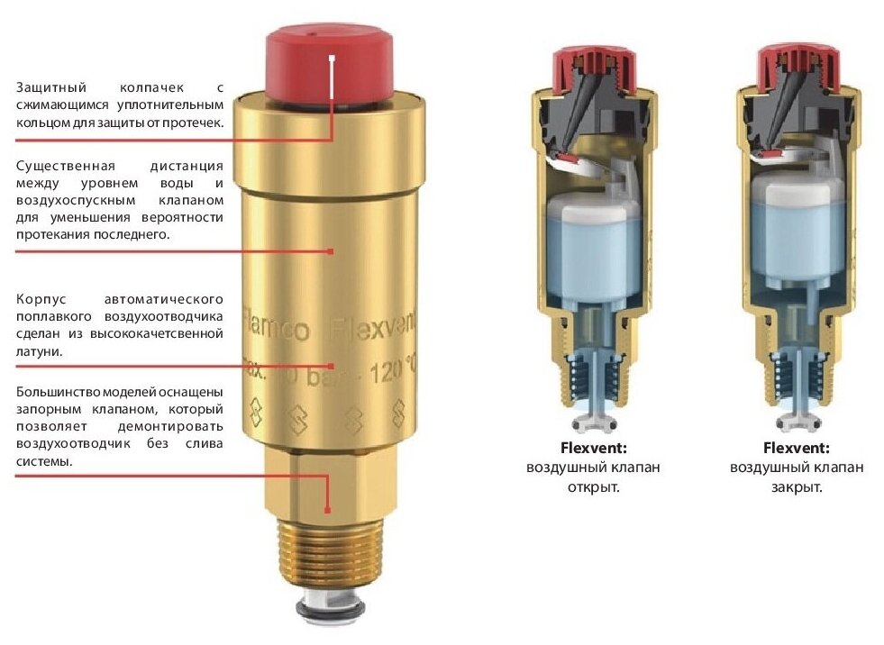 Воздухоотводчик автоматический FLAMCO Flexvent 3/4 с отсечным клапаном информация: