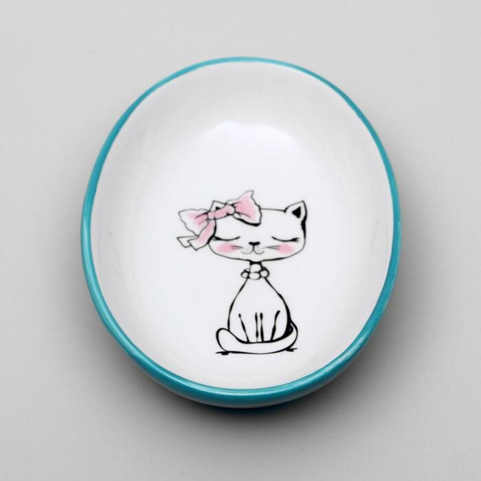 10 цен на Блюдце керамическое «Милая киса», голубая, 15,7 х 11,3 х 3,8 см, 400 мл