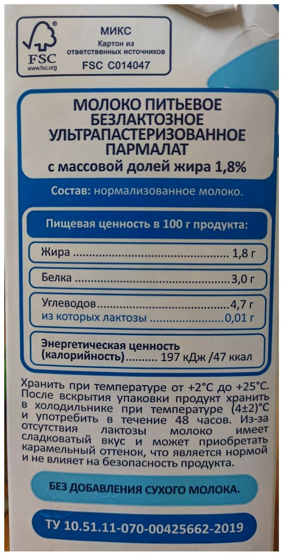 | Жирность % | 1.8 % |