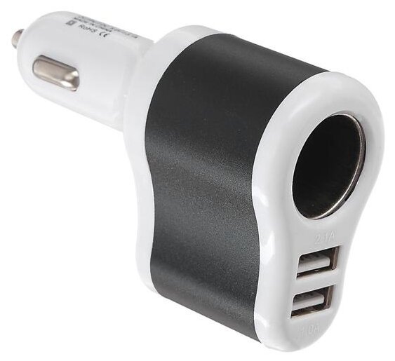 10 цен на TORSO Разветвитель прикуривателя TORSO, USB 1 А / 2.1 А, 60 Вт, 12/24 В, микс