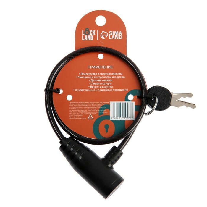 Замок навесной велосипедный LOCKLAND, 6x650 мм, английский ключ с пластиковой ручкой./В упаковке шт: 1 информация: