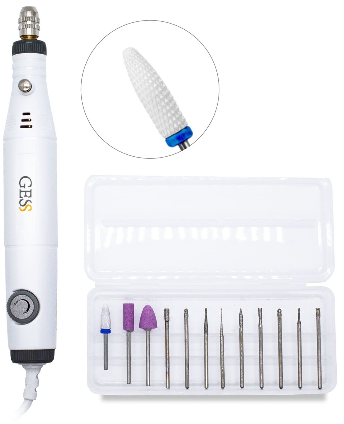 Аппарат для маникюра и педикюра GESS Nail Art, маникюрный прибор, 12 насадок, насадка для снятия гель-лака, 14000 об/мин, 1 шт., белый