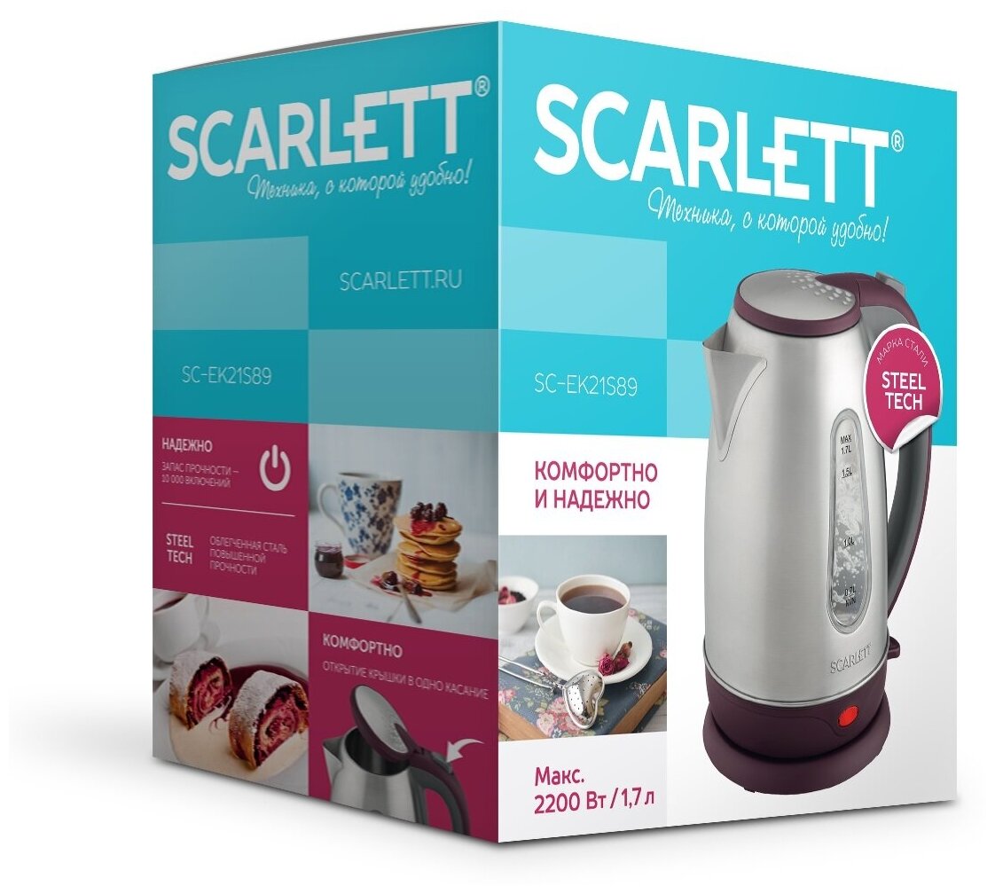 Электрочайник Scarlett SC-EK21S89 сталь информация: