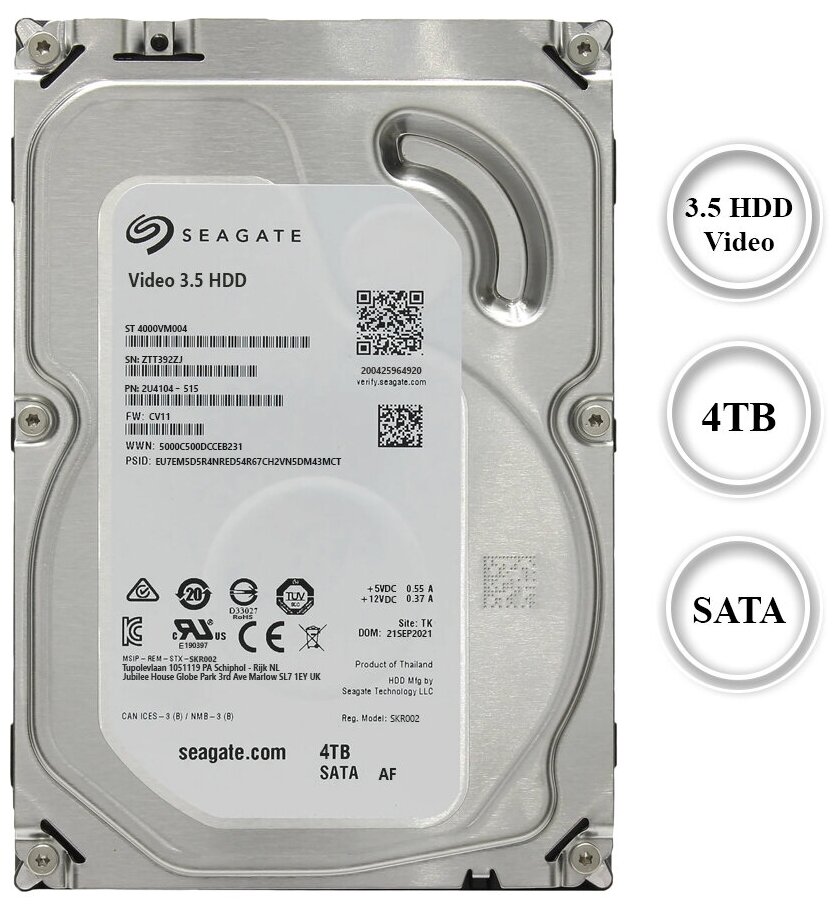 Жесткий диск для видео наблюдения, Seagate, ST4000VM004, 4 ТБ, DAHUA информация: