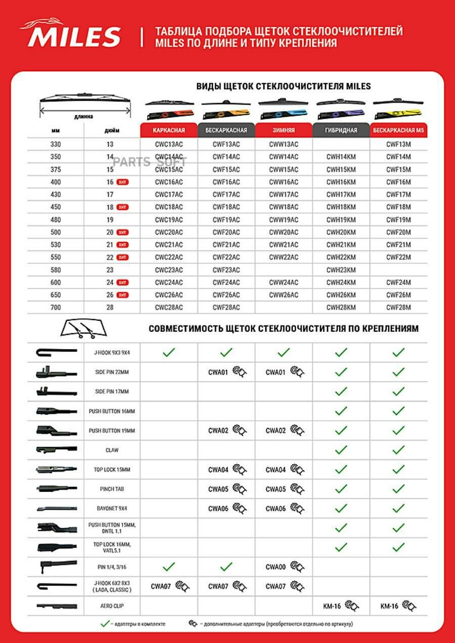 10 цен на MILES CWW24AC Щётка с/о 600мм зимняя ( HOOK 9x3/9x4)