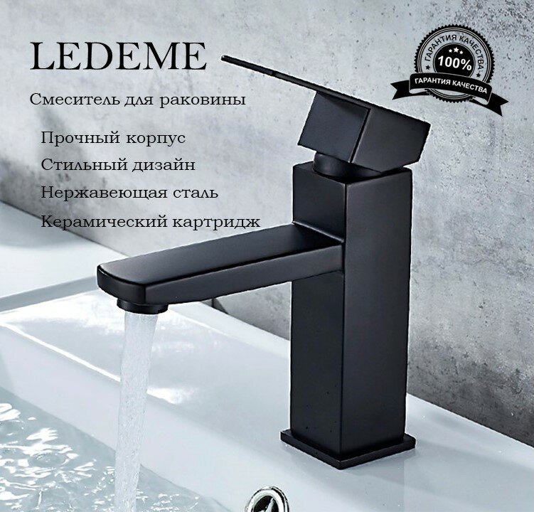 Смеситель для раковины Ledeme R L71033B черный информация:
