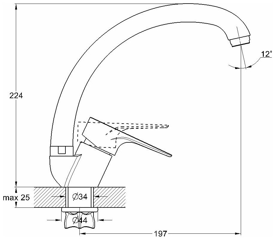 | Комплектация | Смеситель для кухни, Пластиковый аэратор с функцией легкой очистки, Керамический картридж 35 мм, Гибкая подводка 1/2" 40 см – 2 шт., Гайка "корона" для горизонтального крепления, Металлическая рукоятка |