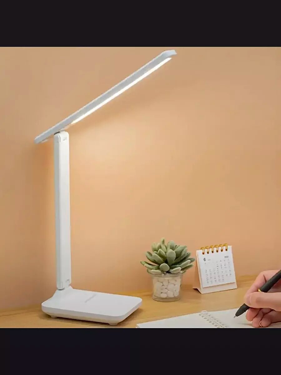Настольная лампа светодиодная многофункциональная LED с будильником календарем беспроводной зарядкой часов