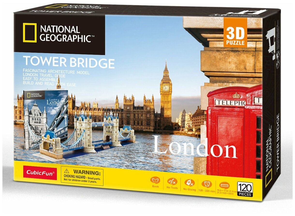 3D пазл CubicFun National Geographic Лондон Тауэрский Мост CubicFun, 120 деталей, DS0978h информация: